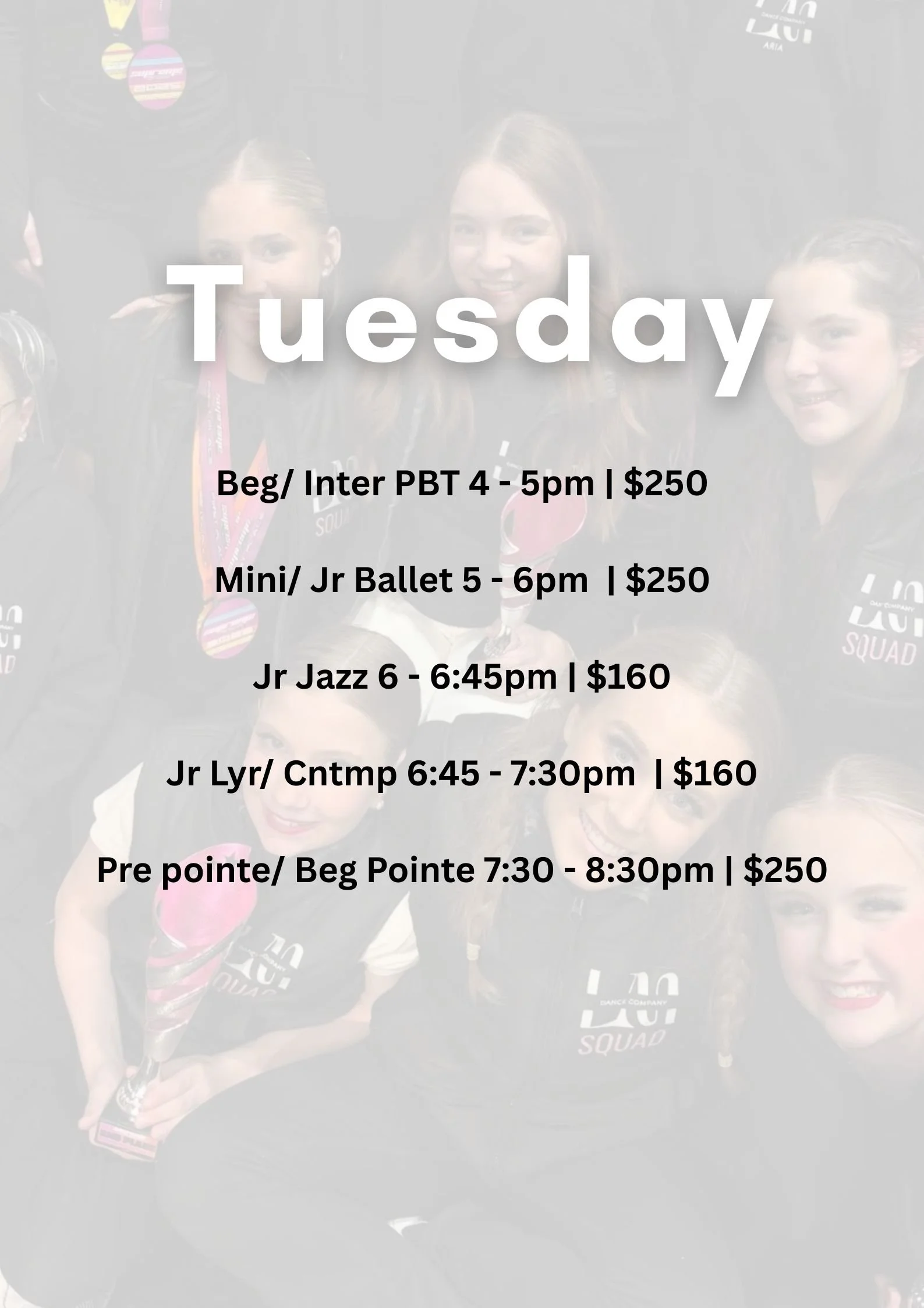 (Valued at over $1,800 individually – that’s over 50% savings!)✨ The perfect choice for dancers who want to train intensively, perform in all squad routines, and shine on stage at our End of Year Gala!