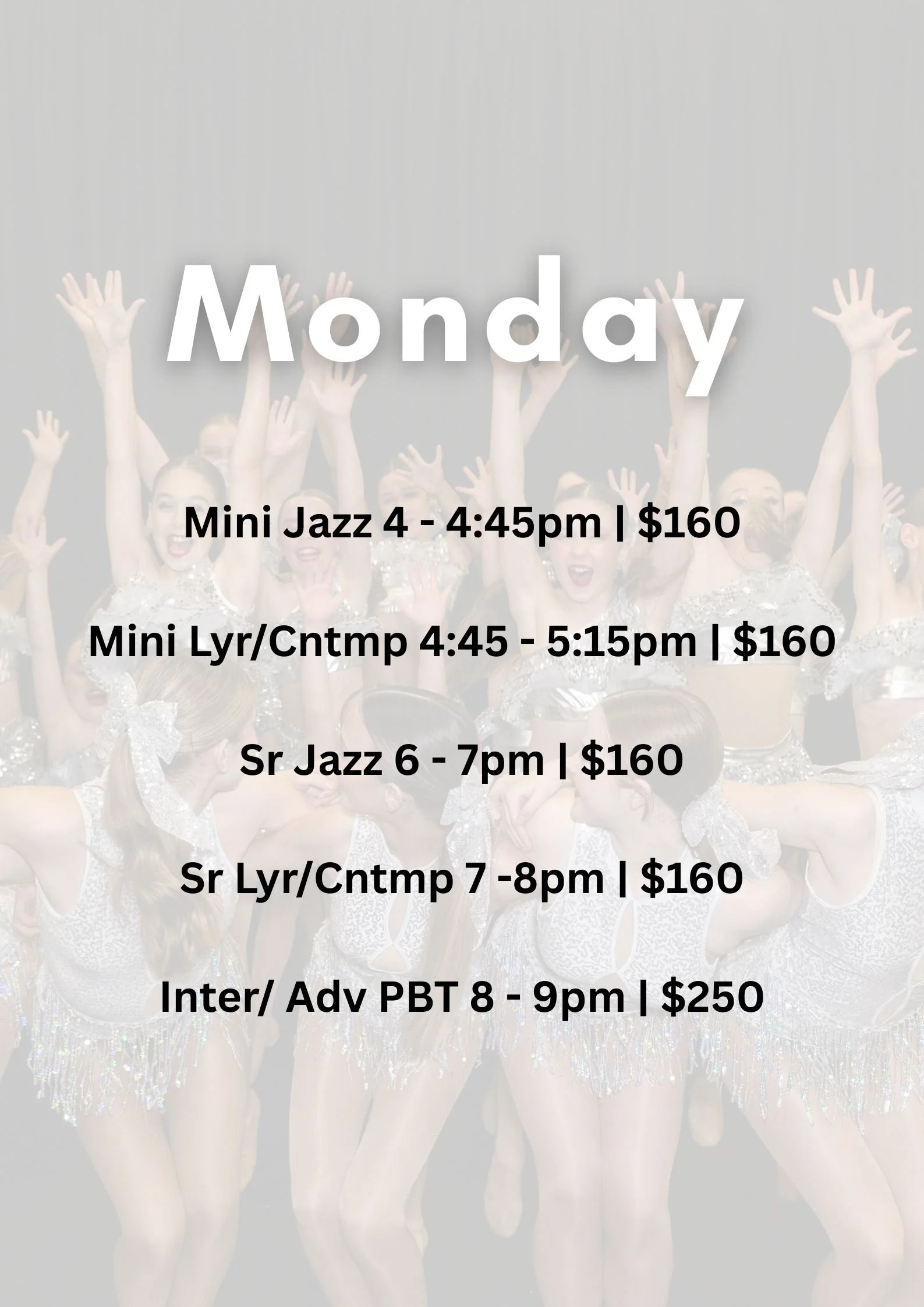 SeniorsSenior Jazz (13+ yrs) – Monday 6:00–7:00pm | $160